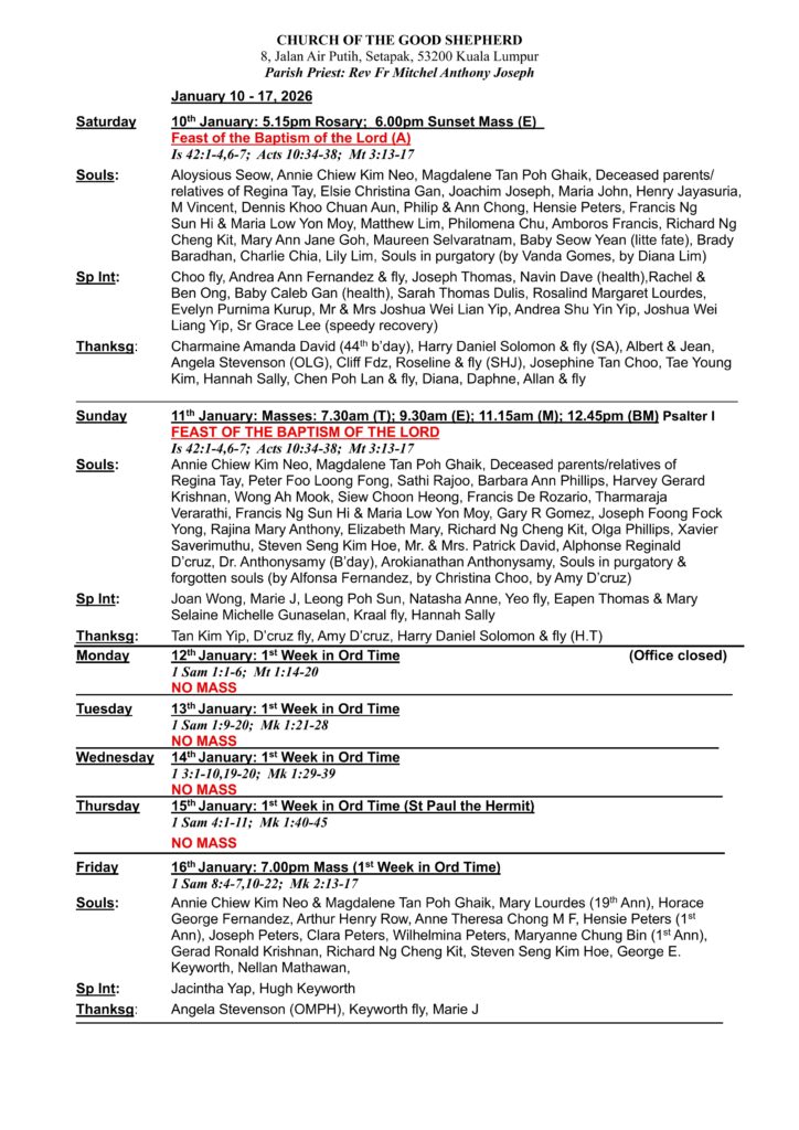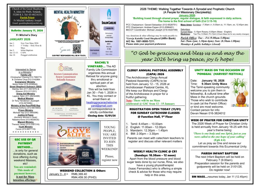 Church Bulletin – 11th Jan Till 17th Jan 2026 By admin | January 10, 2026 Bulletin (E) Jan 11Download Share this: Click to share on Facebook (Opens in new window) Facebook Click to share on X (Opens in new window) X Posted in Church Bulletin