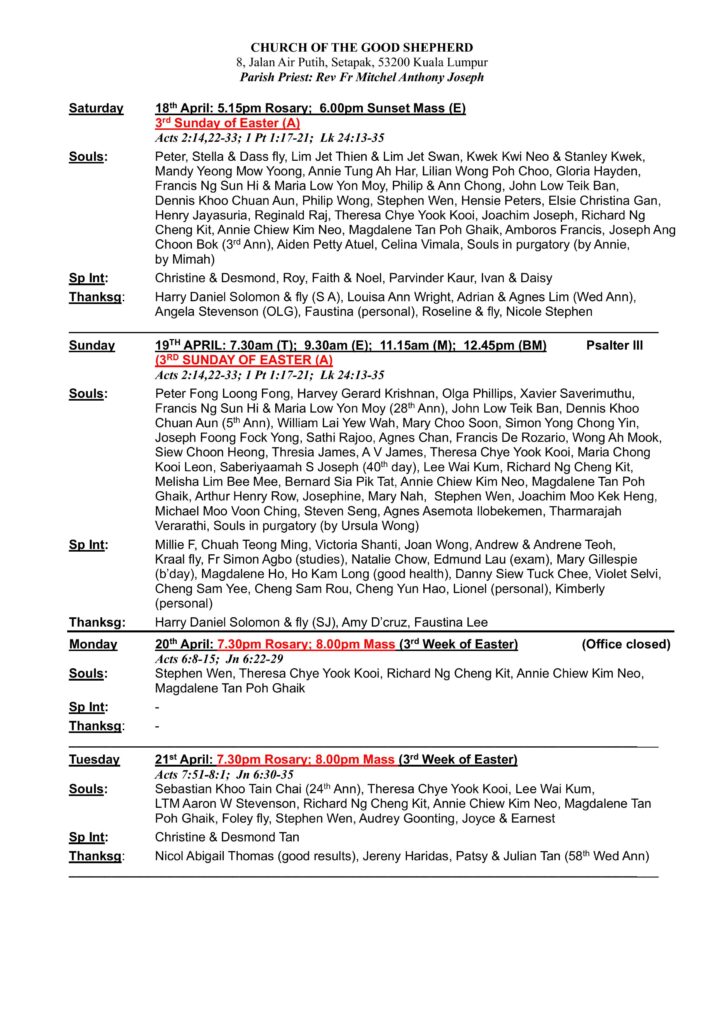 Church Bulletin – 19th April Til 25th April 2026