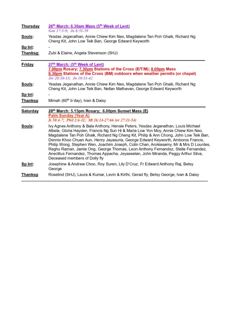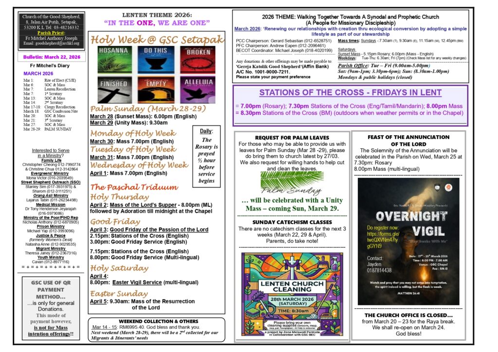 • Church Bulletin – 22nd March Till 28th March 2026