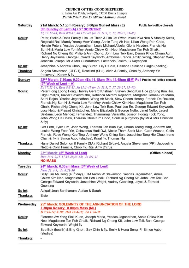 • Church Bulletin – 15th March Till 21st March 2026