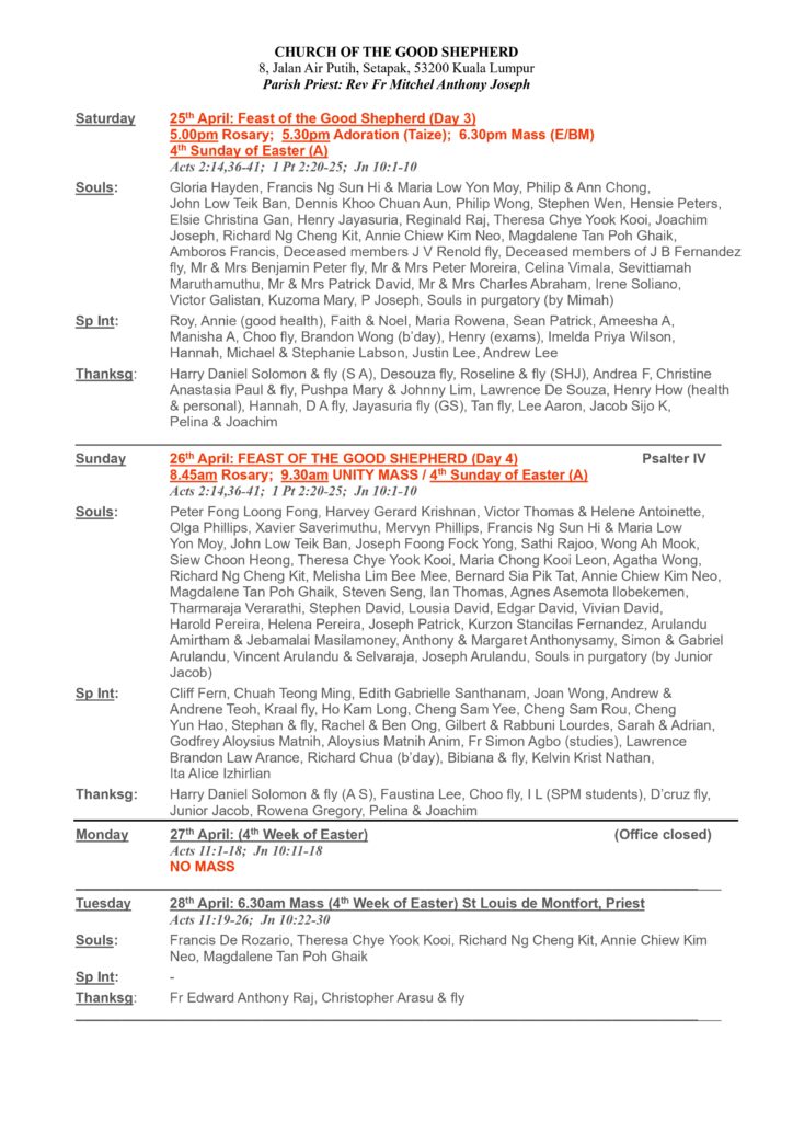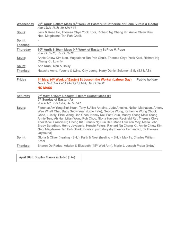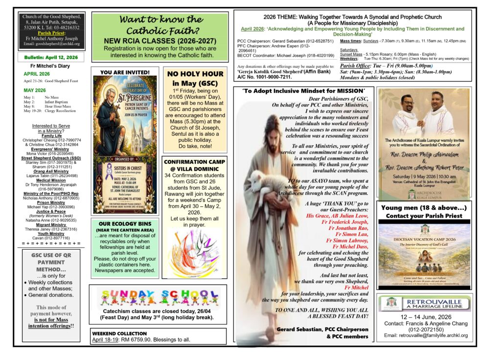 Church Bulletin – 26th April Till 2nd May 2026 By admin | April 25, 2026 Bulletin (E) April 26Download Share this: Share on Facebook (Opens in new window) Facebook Share on X (Opens in new window) X Posted in Church Bulletin