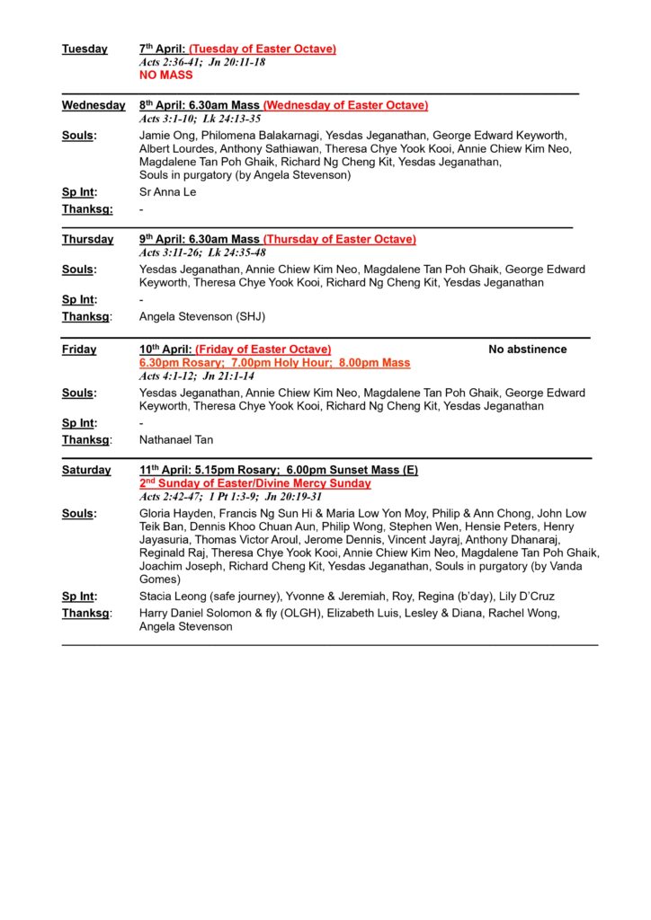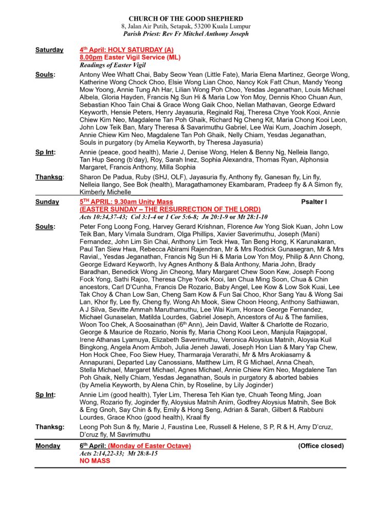 Church Bulletin – 5th April Till 11th April 2026 By admin | April 4, 2026 Bulletin (E) April 5Download Share this: Share on Facebook (Opens in new window) Facebook Share on X (Opens in new window) X Posted in Church Bulletin