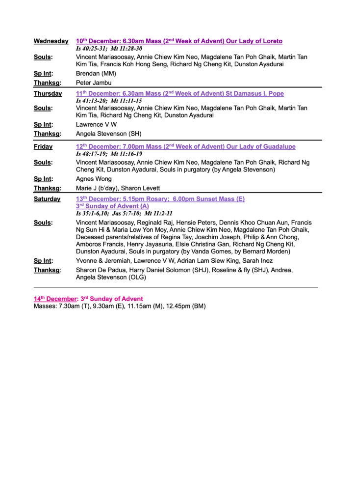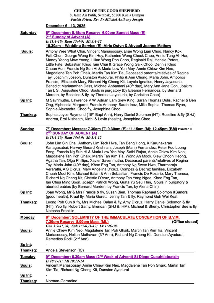 • Church Bulletin – 7th Dec Till 13th Dec 2025